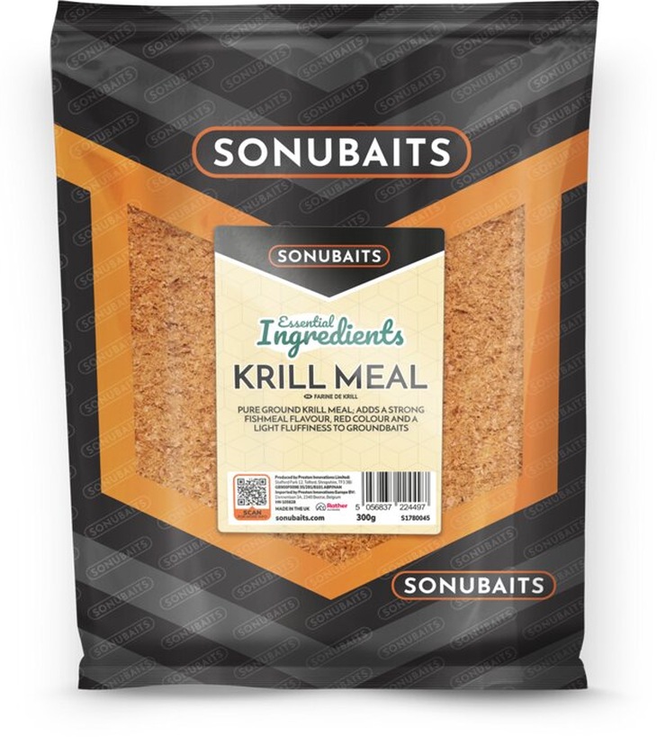 Krill Meal - Pure ground krill meal adds a strong fishmeal flavour, red colour and a light fluffiness to groundbaits. 300g bag.