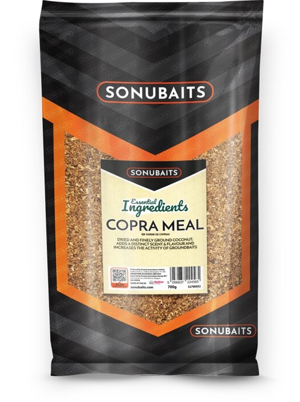 Copra Meal - Dried and finely ground coconut that adds a distinct scent & flavour and also increases the activity of groundbaits. 700g bag.